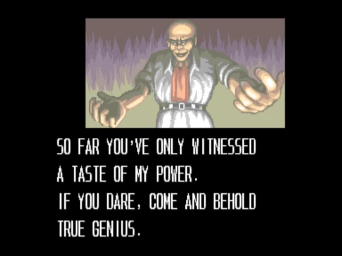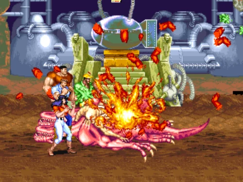 스크린의 박사가 슬라이스 같은 괴생물에게 명령합니다. 두 녀석이 빠른 스피드로 달려들기 때문에 어렵습니다. 아마 이 게임에서 가장 어려운 보스가 아닐까 싶네요.