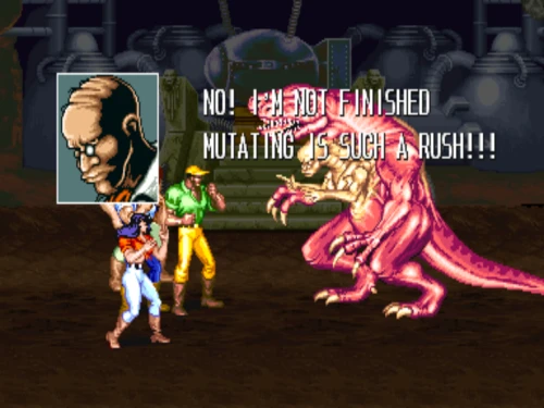 한번 당한 후에는 변신합니다. 샴쌍둥이 공룡 + 에일리언(?) 의외로 어렵지 않습니다. 대쉬킥 이후 두들겨 패는 방식으로 빠르게 체력을 깎습니다.