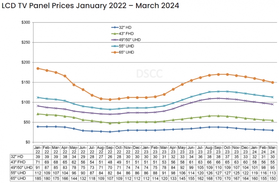 삼성전자 TV 사업부는 2023년부터 LG디스플레이로부터 W-OLED TV 패널을 공급받기 시작했다. DSCC는 올해 삼성전자가 OLED TV 라인업을 확대할 것이라고 전망했다. TV 업체별 경쟁 심화로 소비자를 유인할 수 있는 가격이 책정될 것이란 예상도 덧붙였다.