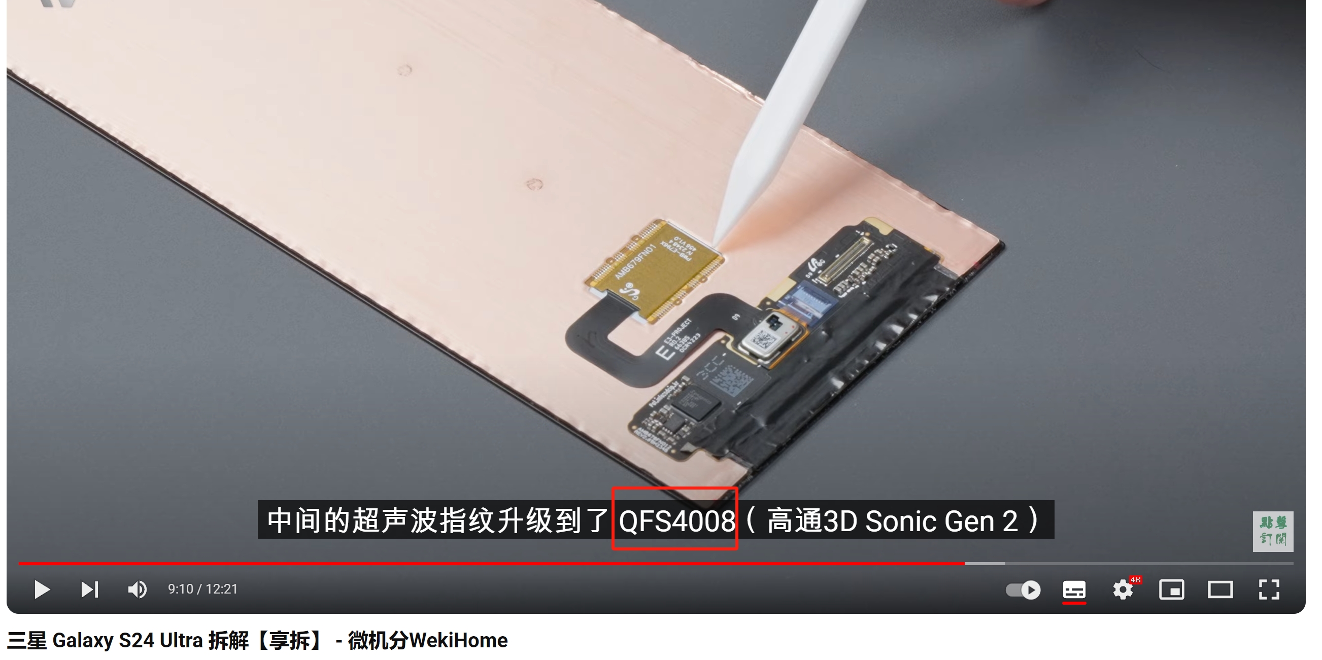 삼성전자가 S23 울트라의 QBT2608에서 S24 울트라에 탑재한 QFS4008로 초음파 지문인식 모듈을 업그레이드했기 때문이라 합니다.